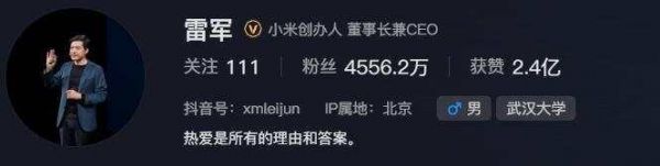 雷军抖音账号疑删除母校武汉大学标签 当晚已恢复