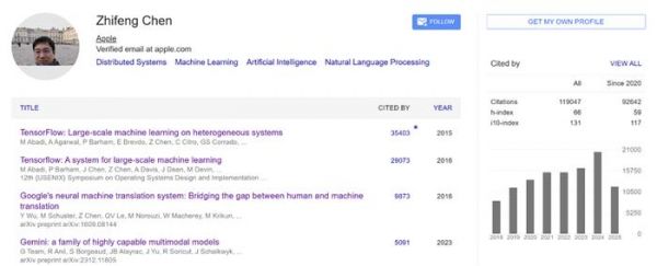 陈智峰本科毕业于复旦大学,后前往美国深造,最终获得伊利诺伊大学香槟分校的博士学位。陈智峰曾在谷歌任职19年,参与TensorFlow、Gemini等重要研究,他与庞若鸣、吴永辉等一样,都是谷歌大脑的早期成员。