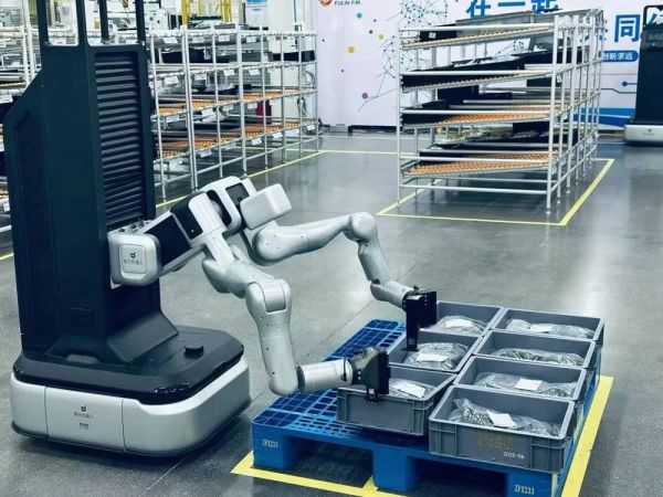 王闯:料箱转运这个场景,目前复合机械臂确实也能做。但我刚才讲了,传统的机械臂没法像 A2W 那样,像人一样去思考。