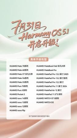而在这场激烈的角逐中,华为自主研发的鸿蒙系统不仅标志着中国首个全栈自研移动操作系统的正式落地,更以全新的架构致力于打破设备间的壁垒,为用户构筑无缝协同的智能体验。7月31日,华为官宣鸿蒙操作系统 5.1正式启动升级,包括Mate系列、Pura系列、MatePad等在内的三十余款机型上开启同步更新。