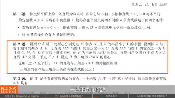 平面几何题对于AI来说,算是最容易做的题型之一了。在这里,两个AI也给出了不一样的做法。DeepMind的做法是一个更加几何的,更加自然的做法,我觉得也是更接近于正常人类选手能想到的做法。相比起来,OpenAI的方法就非常暴力,因为它直接使用了解析几何的手段。