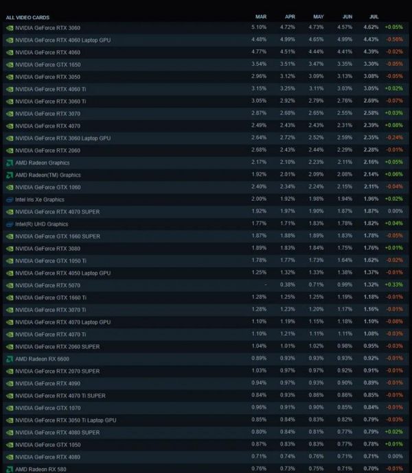 AMD 的崛起主要归功于其 3D V-Cache CPU 的流行,其中包括Ryzen 7 9800X3D,这些 CPU 受到了游戏玩家和发烧友的一致好评。对高性能 CPU(尤其是 X3D 型号)的需求以及极具竞争力的价格似乎正在削弱英特尔先前的优势。这种转变也意味着 AMD 现在在 PC 游戏 CPU 市场的份额比以往更大。