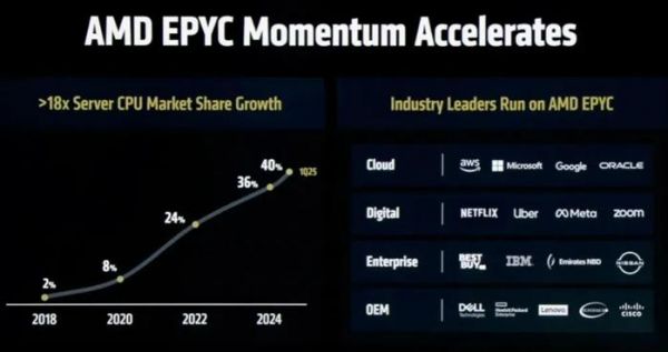 如上图所示,AMD 的份额目前为 40%,而 2018 年几乎为零。这是因为: