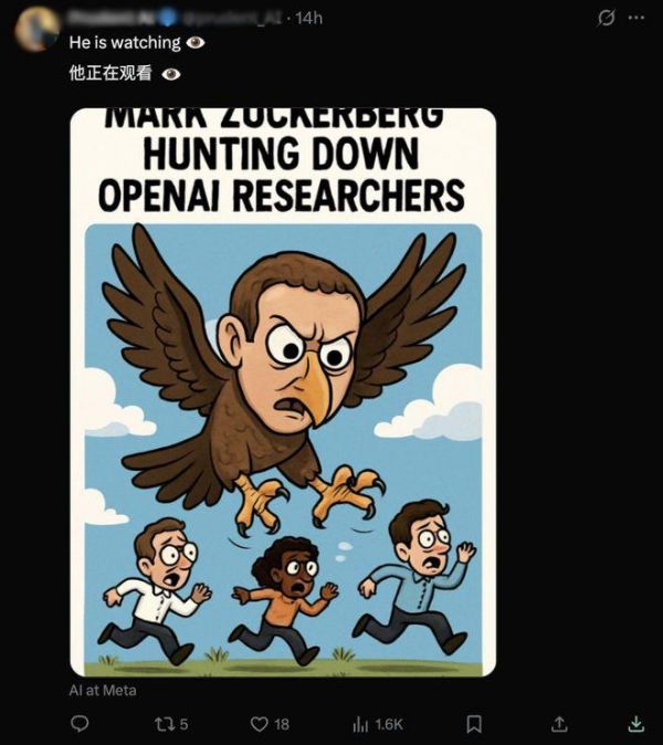 也有网友在评论区做了表情包“提醒”阿尔特曼,警惕被扎克伯格挖人。值得一提的是,此前,据《华尔街日报》报道,Meta创始人兼CEO马克·扎克伯格(Mark Zuckerberg)就向陈信翰开出了10亿美元天价薪酬,但被他拒绝。