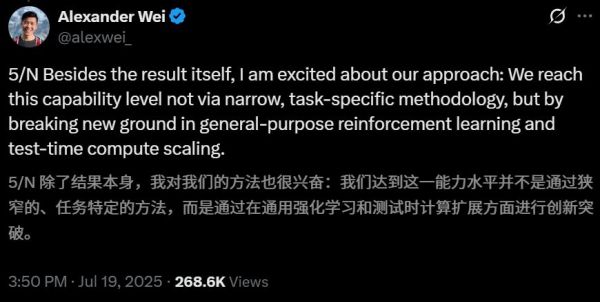 前一阵OpenAI的模型在数学竞赛中拿了金牌后,高级研究员Alexander Wei在X上表示,他们所使用的强化学习方法是「通用」的。