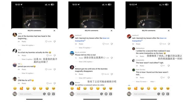 一位TikTok用户说,“这是第一个我相信是真的的AI视频,等我老了肯定完蛋了”。另一位用户则表示,“现在我觉得我以后就会是那种被骗的老年人”。