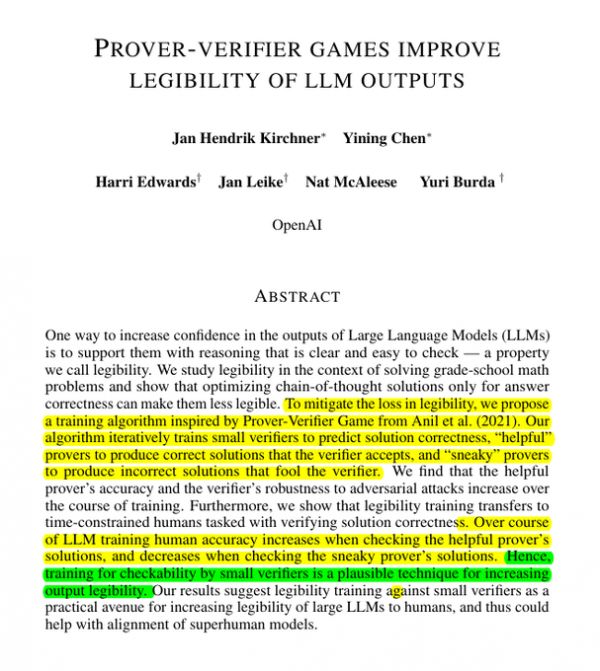值得注意的是,这项关键技术被指为OpenAI前“超级对齐”团队的“技术遗产”。发表《证明者-验证者游戏提升大语言模型可读性》这篇论文的六位作者中,目前仅有Yining Chen和Nat McAleese两人仍留在OpenAI。