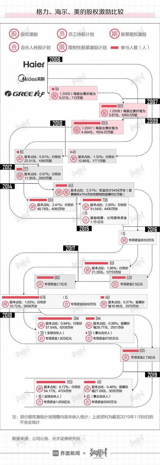 对比美的、海尔,在家电行业,自2006年就已开启股权激励计划的格力只是“起了个大早”。