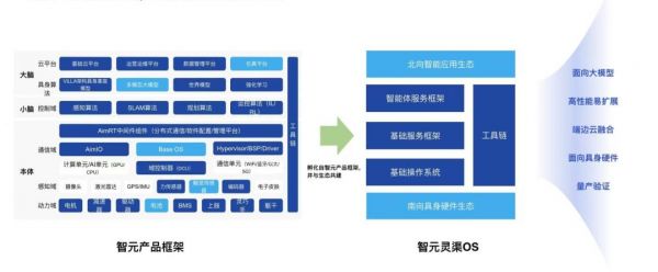 智元将这一生态架构概括为“南向适配具身硬件、北向支撑智能应用”,它的终极目标则是以此建立一个具身智能行业统一的系统底座与生态接口。