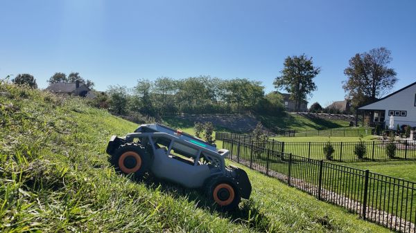 过去割草的操作难度大,存在安全隐患。人工在斜坡上手推易崴脚、耗费体力,驾驶设备也可能发生翻车事故、甚至危及生命。如果只做传统手推式割草机升级,其创新空间有限——即便优化推力、减轻重量,用户仍需暴露在阳光、粉尘中,甚至可能因草屑过敏产生不适。