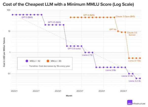 但好戏登场了:你肯定看过那张刷屏的 a16z 神图,说大模型的成本正以每年 10 倍的速度跳水。