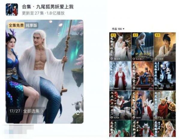 “50块钱做3集”“月入50万”,红星资本局注意到,今年以来,AI短剧的热度逐步提升。近期一部《九尾狐男妖爱上我》的AI短剧引发社交平台热议,播放量已超过1.8亿,从场景到角色均由AI生成。