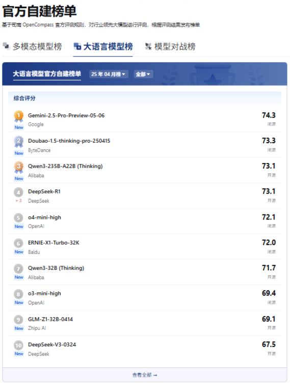 图:OpenCompass大语言模型榜