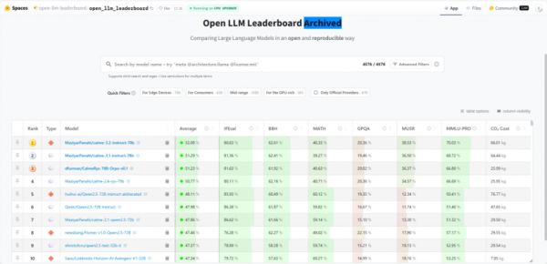 图:HuggingFace上的开源大语言模型排行榜