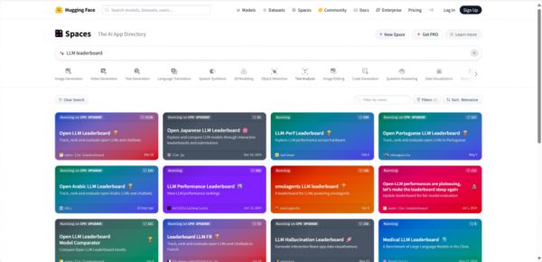 同样地,在HuggingFace上搜索LLM Leaderboard,也可以看到有多个领域的排行榜。