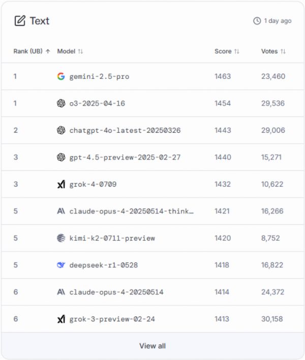 图:LMArena文本能力排行榜
