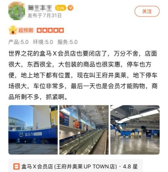 得知盒马X会员店关门的消息,不少消费者闻讯打卡、留评价。