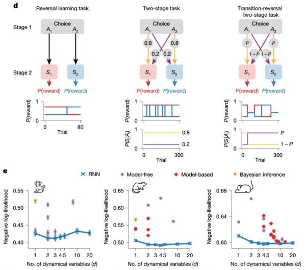 这些模型具有一个共同特点:它们结构简洁,参数量少,比如“学习率”(即控制新信息更新速度)和“决策噪音”(即干扰决策的影响因素,反映行为的随机性),因此容易解释和拟合。但恰恰因其简洁性以及隐含的最优性假设,它们往往难以捕捉真实生物行为中普遍存在的复杂性与次优性。