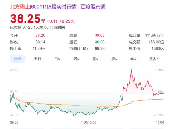 7月10日晚间,北方稀土发布2025 年半年度业绩预增公告。公司预计,2025年上半年净利润将达到9亿至9.6亿元,同比增长高达1882%~2014%。受此影响,截止至7月25日,这家稀土巨头半个月内市值飙升50%以上,成交额突破1383亿元。
