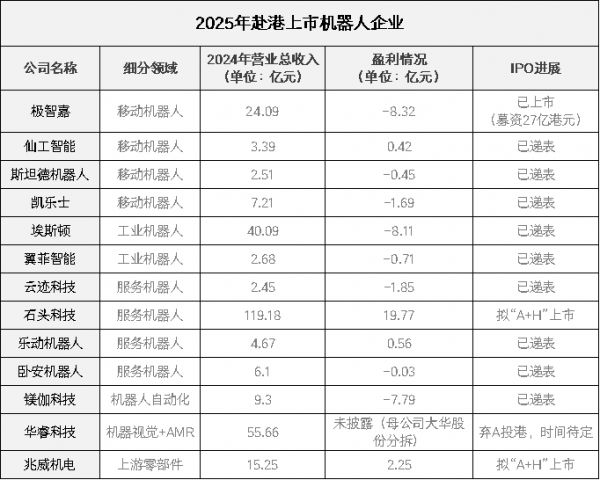 在极智嘉成功募资27亿港元创下机器人企业H股IPO纪录的两周内,又有9家机器人公司递交了上市申请。