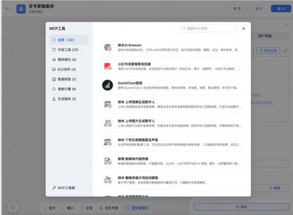此外,技术落地的门槛也大幅降低。纳米AI的智能体工厂通过无代码化能力,让用户无需编程,只需从工厂挑选现成的专家智能体,如 “视频剪辑师”“配音专家”等,用鼠标简单连线,就能像搭积木一样组建专属团队。