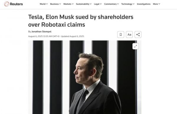 车东西8月7日消息,据路透社报道,日前,特斯拉股东发起集体诉讼,指控CEO马斯克和几位现任和前任领导人其在奥斯汀推出的无人出租车(Robotaxi)存在证券欺诈。