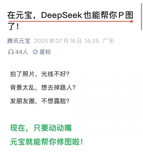 字母榜注意到,就在DeepSeek面临月活下滑的同时,在腾讯元宝的官微中,在介绍“一句话AI修图”的新功能时,仍然以“在元宝,DeepSeek也能帮你P图了!”作为标题。就在DeepSeek自身红利消退之下,元宝的团队似乎仍有一些“路径依赖”。