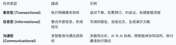 为了更好地理解它的实际价值,我们可以将 Agentic Web 的核心能力拆解为三大类:事务型 (Transactional)、信息型 (Informational) 和交流型 (Communicational)。它们共同构成了智能体参与数字世界的三种基本方式。