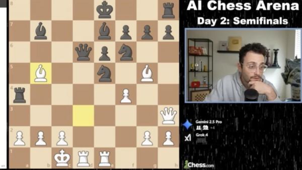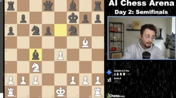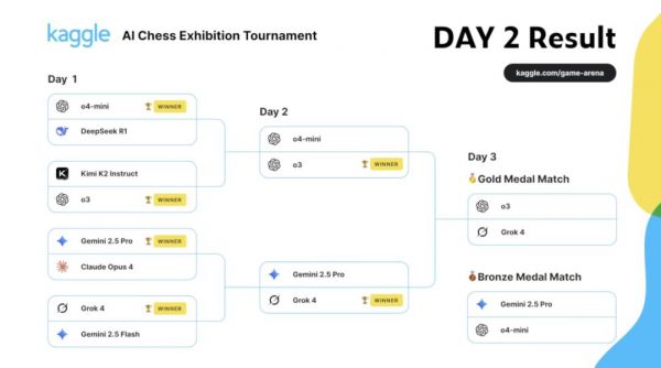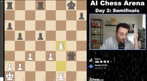 就在 Kaggle 游戏竞技场刚刚举行的 AI 国际象棋锦标赛半决赛中,o3 以 4:0 横扫 o4 mini,而 Grok 4 与 Gemini 2.5 Pro 激战五局,最终通过加时赛惊险取胜。