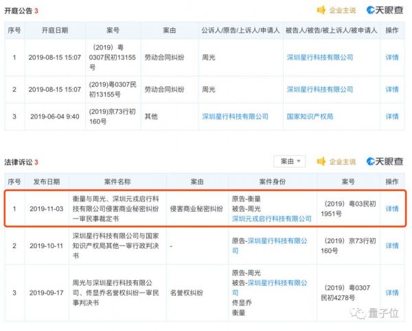 三,衡量以“侵害商业秘密”为由,将周光和深圳元戎启行告上法庭,最后因“在法定期限内未预交诉讼费”而自动撤回。