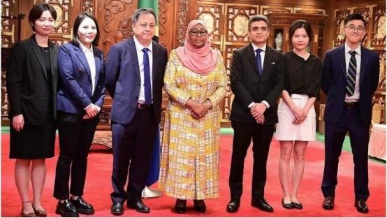 传音控股创始人、董事长竺兆江(左3)与坦桑尼亚总统哈桑等