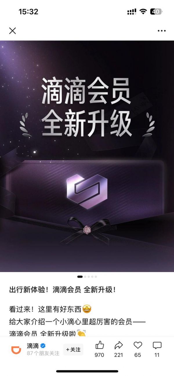 8月8日,滴滴在公众号更新了一则公告,滴滴会员迎来全新升级。