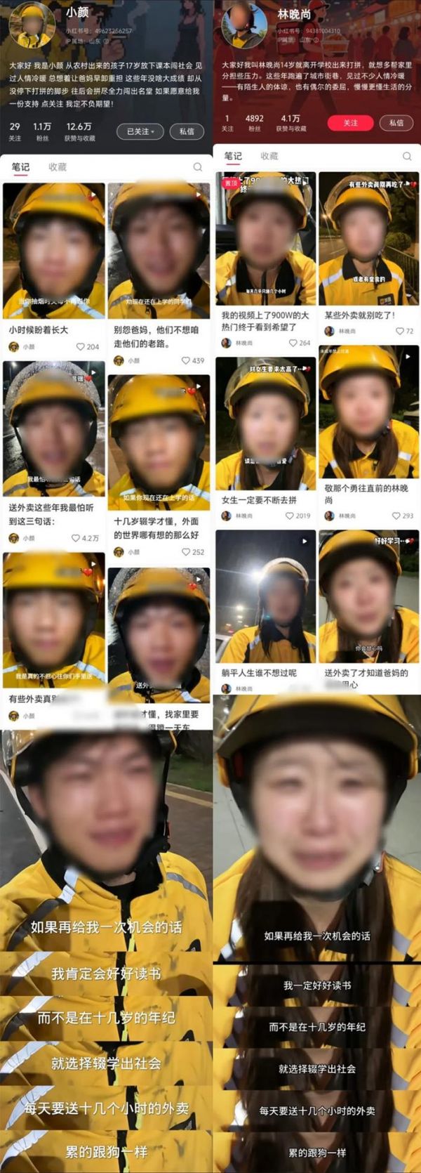 短视频账号“苏星颜努力中”“小颜拼搏中”(以下简称“苏星颜”)自今年6月14日起更新数十条作品,所有视频均身穿美团骑手工服,哭诉“后悔没好好读书”“凌晨四点送外卖”“每天跑十几个小时外卖”“一个差评一天白干”等悲惨经历,与美团此前辟谣的“陌林努力中”“红孩儿.命硬”等虚假摆拍账号风格及内容雷同。这些内容引发了不少网友的同情与支持,也有网友对其真实性提出质疑“哭是为了拍视频,请问天天哭能挣多少”。