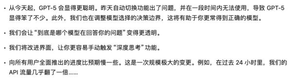 推文结尾Sam更是表示:“我们会继续努力让系统稳定下来,并持续听取反馈。正如我们之前提到的,在一次性推出这么多更新时,出现一些波动是预料之中的,只是这次的波动比我们希望的还要大一点!”