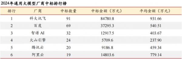 据统计,2024年在央国企发布的通用大模型招标项目中,科大讯飞中标金额高达8.48亿元,中标量高达91项。