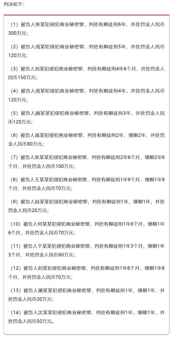 最终14人被判刑,首犯张琨在内的5人实刑,总罚金1350万......这起足以载入中国芯片历史的商业窃密案,不仅给对尊湃造成毁灭性打击,更让不少本来前景可期的人前途折戟。