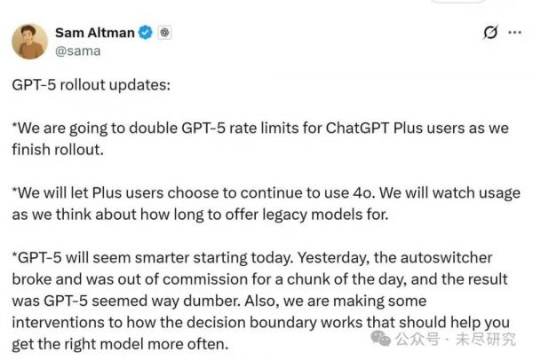 这一次的“路由”技术,加重了这种消极印象。结果,熟悉模型的精英用户与已经用顺了GPT-4o的普通用户,希望从模型中榨取更多理性的用户与希望从模型中获得更多感性陪伴的用户,都被激怒了。很快,奥特曼就宣布,将为Plus付费用户复活GPT-4o。
