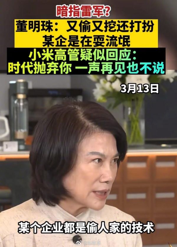 董明珠回应暗指雷军言论,称未点名对号入座即心虚