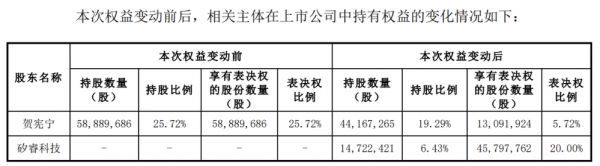 本次权益变动实施完成后,公司控股股东将由贺宪宁变更为矽睿科技,上市公司实际控制人将由贺宪宁变更为无实际控制人。