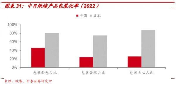 也正是基于这样的销售渠道差异,日本预包装烘焙品占比远高于中国。根据欧睿数据,中国预包装面包占比为46%,日本则高达81%。