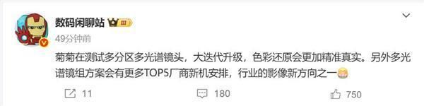 从爆料来看,多家厂商都将跟进多光谱镜组方案,届时各大品牌的影像色彩还原能力将会更强。