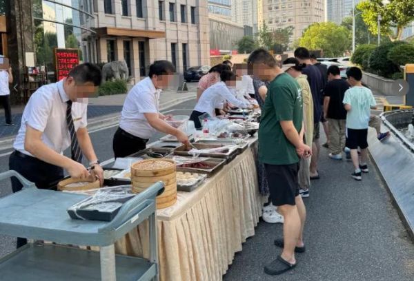 这股热潮最新鲜的注脚,当属高端酒店的“下沉式”摆摊。上海的金陵紫金山大酒店、中建万怡酒店,浙江的浙江大酒店、望湖宾馆,河南的永和铂爵国际酒店、大河锦江酒店等,从一线城市到三、四线小城,酒店外摆售卖卤味、快餐已成为一股新潮流。