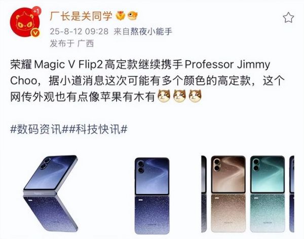 影像方面同样值得期待。知名爆料源“数码闲聊站”曾表示荣耀新款小折叠外观和影像确定有大升级,数码科技KOL@旺仔百事通在转发荣耀Magic V Flip2设计稿时,同样表示这一代的小折叠影像和续航有大升级,值得期待。