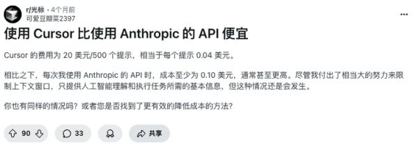 在社区中有开发者表示,他们几乎可以“无限使用Claude Sonnet 4”,即便免费额度耗尽,仍可以继续调用。甚至出现,在Cursor使用Claude模型,比在Anthropic中使用还便宜的离谱状况。