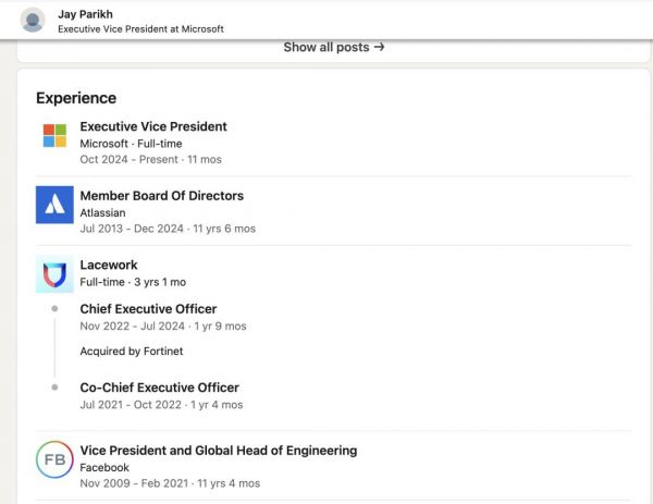 团队中有不少人都有Meta(包括Facebook时期)的工作经历,不过微软发言人确认,一些Meta高管在Parikh加入之前就已经被微软聘用。