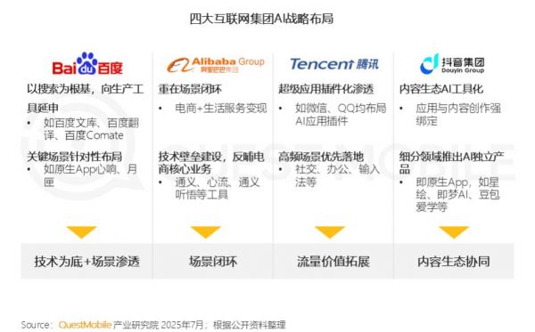 腾讯、阿里、字节、百度等巨头的成熟应用体系能快速完成“应用—反馈—优化”的闭环。例如微信,连接十亿用户的生活与工作,一旦深度集成AI,将从个人助理到企业协作全面渗透,释放远超单一工具的市场势能。