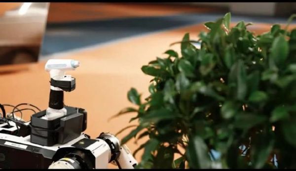 机器狗按照指令给盆栽浇水