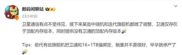博主数码闲聊站爆料,卫星通信越来越不受待见,未来中端机和迭代旗舰都做出调整,只有顶配内存才搭载。不同于现在国产厂商顶配内存和卫星通信绑定,未来单独推出卫星通信版本,消费者可以自由选择更便宜不带卫星通信版本旗舰手机。