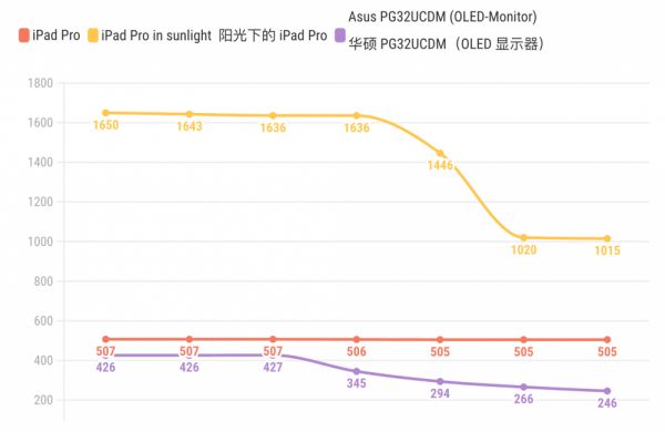 要解决亮度不均的问题,除了锁最低亮度,就是采用低频调光的方式,代价就是「瞎眼屏」,对眼睛的负担会更重,这也是iPad Pro采取的策略。
