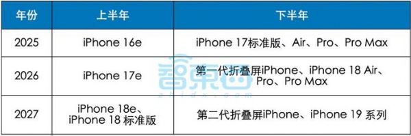 据报道,苹果将于明年上半年发布iPhone 17e机型,下半年发布iPhone 18的Air、Pro、Pro Max以及折叠屏手机。从2027年开始,苹果调整新机发布时间表,上半年将重新增加标准版机型,预计全年共发布6款机型。